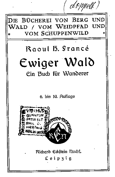 "Ewiger Wald" von Raoul H. Francé - Richard Eckstein Nachf. Leipzig 1922